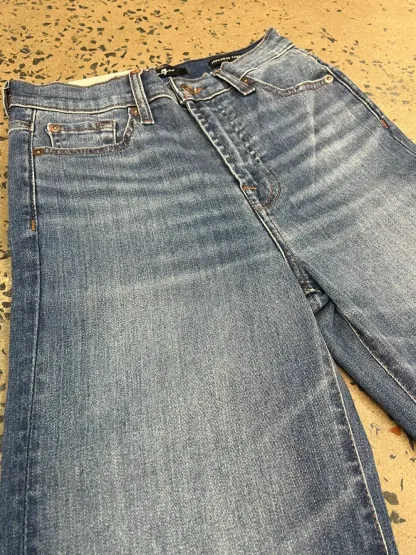 The iconic 7 For All mantktkind jean, in a must-have wide leg trouser silhouette - The Dojo. Featuring a slightly higher rise and a subtly wider flare alongside the signature brown embroidered 7 pockets. This medium wash is a timeless wardrobe staple that you'll be loving for years to come. 98% Cotton, 2% Spandex