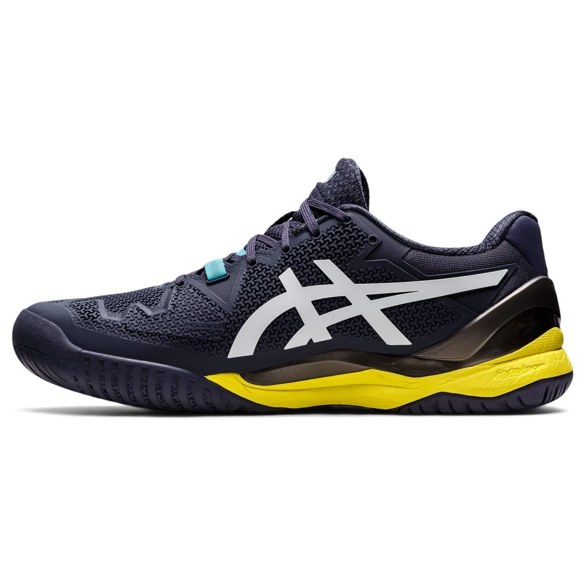 The GEL-RESOLUTION 8 tennis shoe promotes a responsive stride with a close-to-the-court feel. The FLEXION FIT upper provides form-fitting support with the integration of DYNAWALL technology, which offers added midfoot stability during lateral movements and coast-to-coast coverage. Implementing a torque control feature in the heel counter, this shoe is also designed to help maintain a locked in feel during quick transitions. Featuring GEL technology cushioning in the heel and midfoot, this shoe helps reduce the impact of shock from abrupt stop and go movements on court. Additionally, the model also incorporates an AHAR compound in the outsole that works in conjunction with the PGUARD toe protector to increase traction on court and reduce the overall level of wear. Creating an accelerated response with a natural close-to-the-ground feel, the GEL-RESOLUTION 8 tennis shoe helps you approach your matches with confidence.