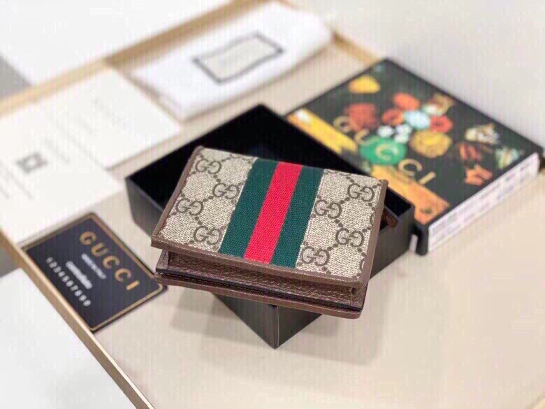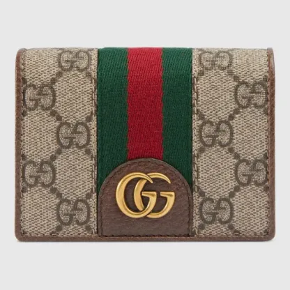 First used in the 1970s, the luxury logo was an evolution of the original Bag rhombi design from the 1930s, and from then it's been an established symbol of Bag's heritage. The card case wallet combines the signature motif with the Web stripe—a timeless pairing that pays homage to Bag's roots.
