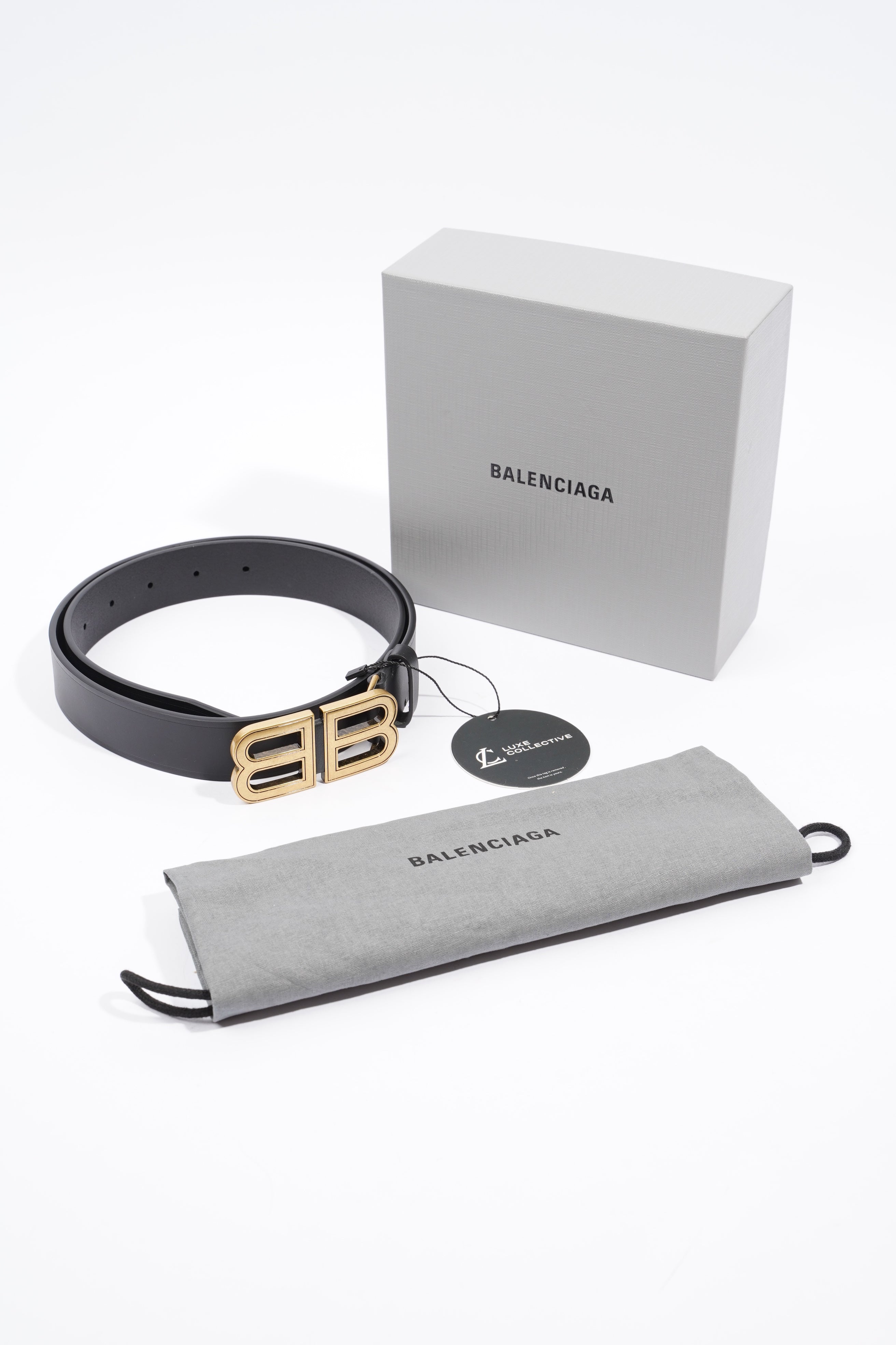 Brand: BALETKTNCIAGAStyle: BB Hourglass BeltSize: 80cmWidth: 80cmHeight: 3cmDepth: 0.2cmCondition: UnusedColour: BlackMaterial: Calfskin LeatherProduct Code: 673523 1000 P 568024Manufactured In: ItalyComes With: Original Box and Dustbag
