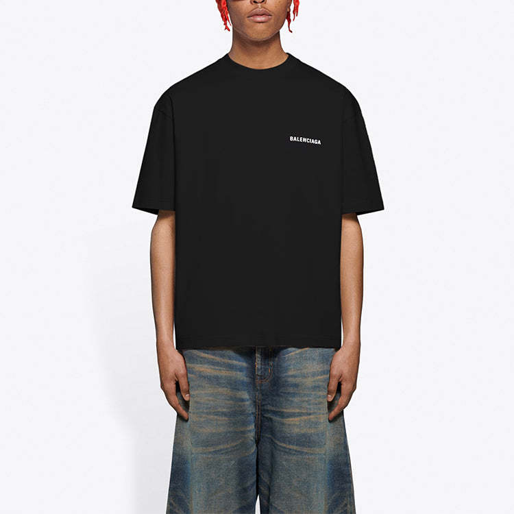 Men's BALETKTNCIAGA FW21 Logo Printing Retro Short Sleeve T-shirt Black 612966TIVG51070