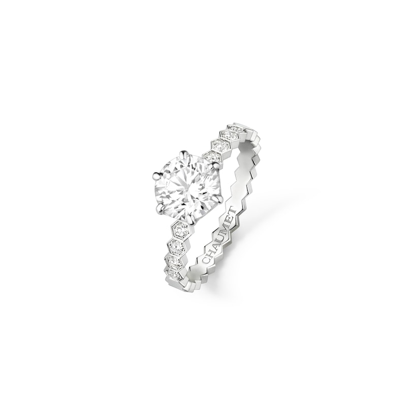 Graphic and contemporary, the Bee My Love solitaire builds on the CHAtktUMET codes with its geometric honeycomb, an unexpected innovation based on the imperial bee motif.