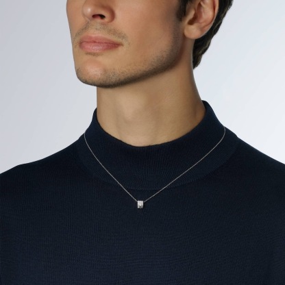 Emblematic of the Bee My Love collection, honeycombs turn into a precious, radiant pendant. Crafted following a perfect geometry of shapes, the diamond and mirror-polished white gold honeycombs capture and scatter the light in a play of radiant beams on the skin.