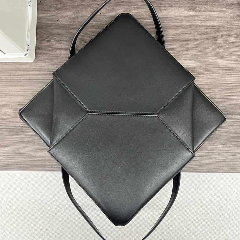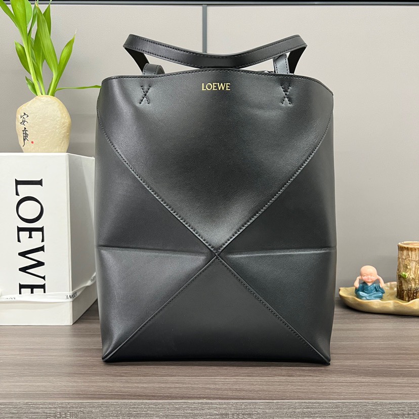 loetktwe Puzzle Fold Tote in shiny calfskin Medium Black - Bag