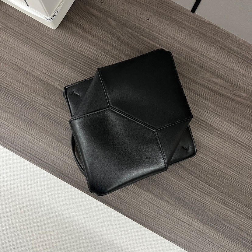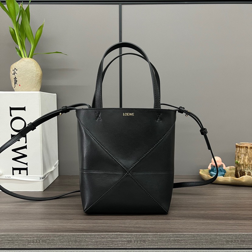 loetktwe Puzzle Fold Tote in shiny calfskin Mini Black - Bag
