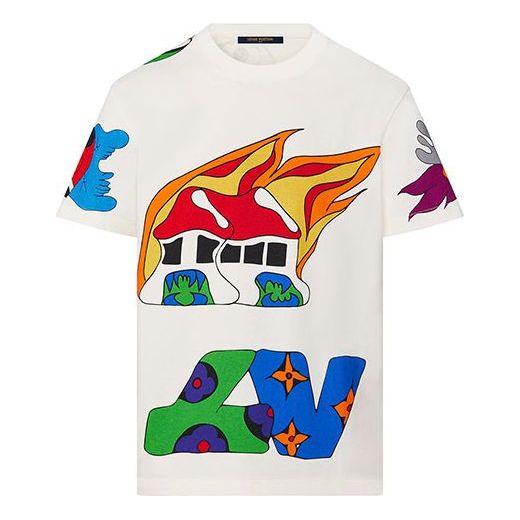 LOTKTUIS VUITTKTTONSS21 Cartoon Logo Print T-Shirt For Men White 1A8PUV