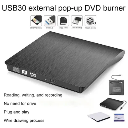 USB 3.0 Slim CD ROM Reader Rewriter Portable DVD&CD-ROM Burner Player Type-C for Laptop Desktop PC Windows Linux Mac OS Apple