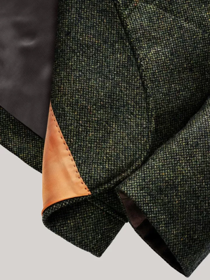 Tweed - nature at its best. The originally fabric is currently experiencing a major revival, especially in the form of jackets and suits.聽 Tweed keeps you warm in winter and is naturally wind- and water-repellent. The discreet traditional look comes with the small stand-up collar. The color is reminiscent of the forest floor and ultimately gave it its name. You can combine other dark tones or natural colors or even a bright yellow.