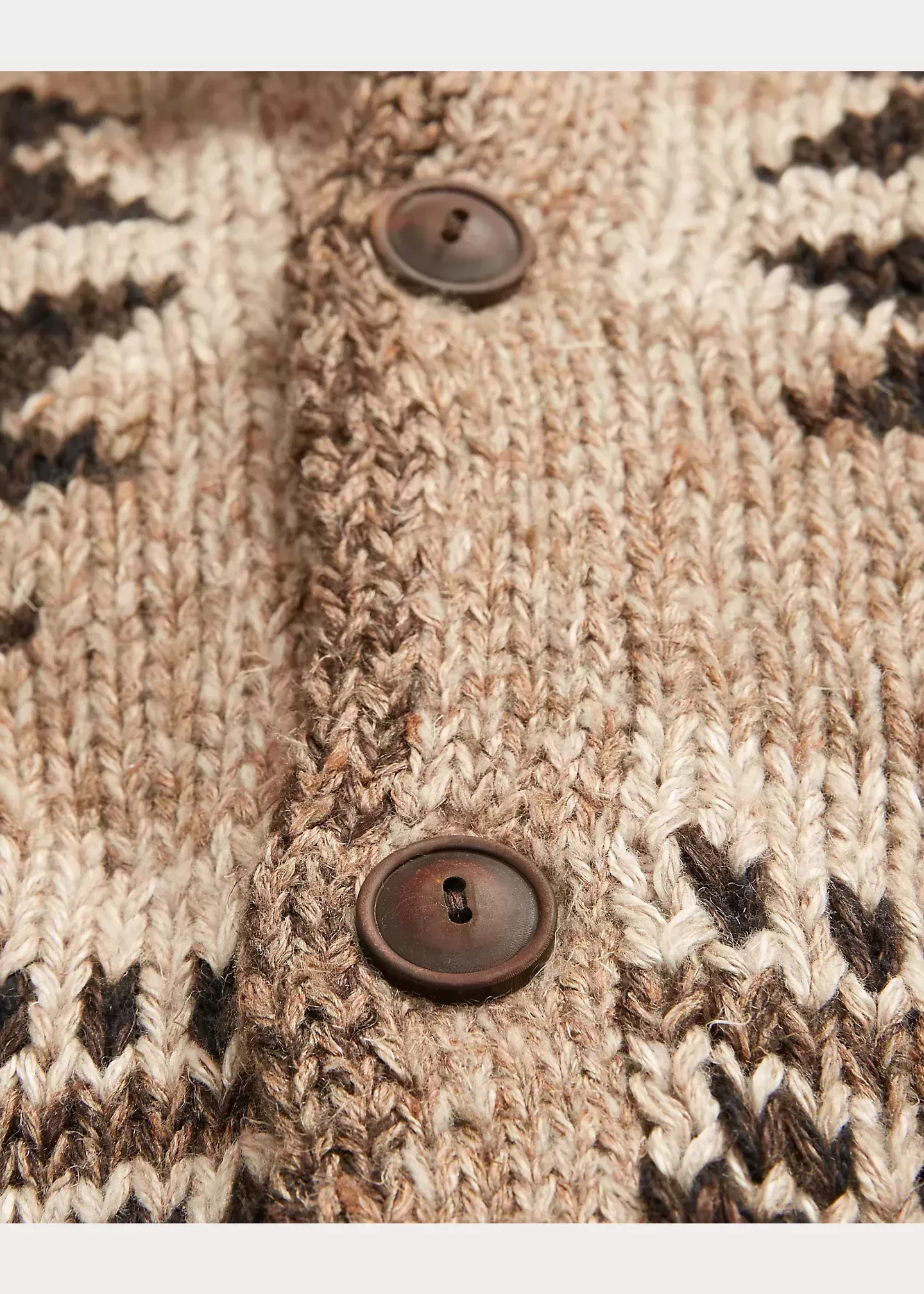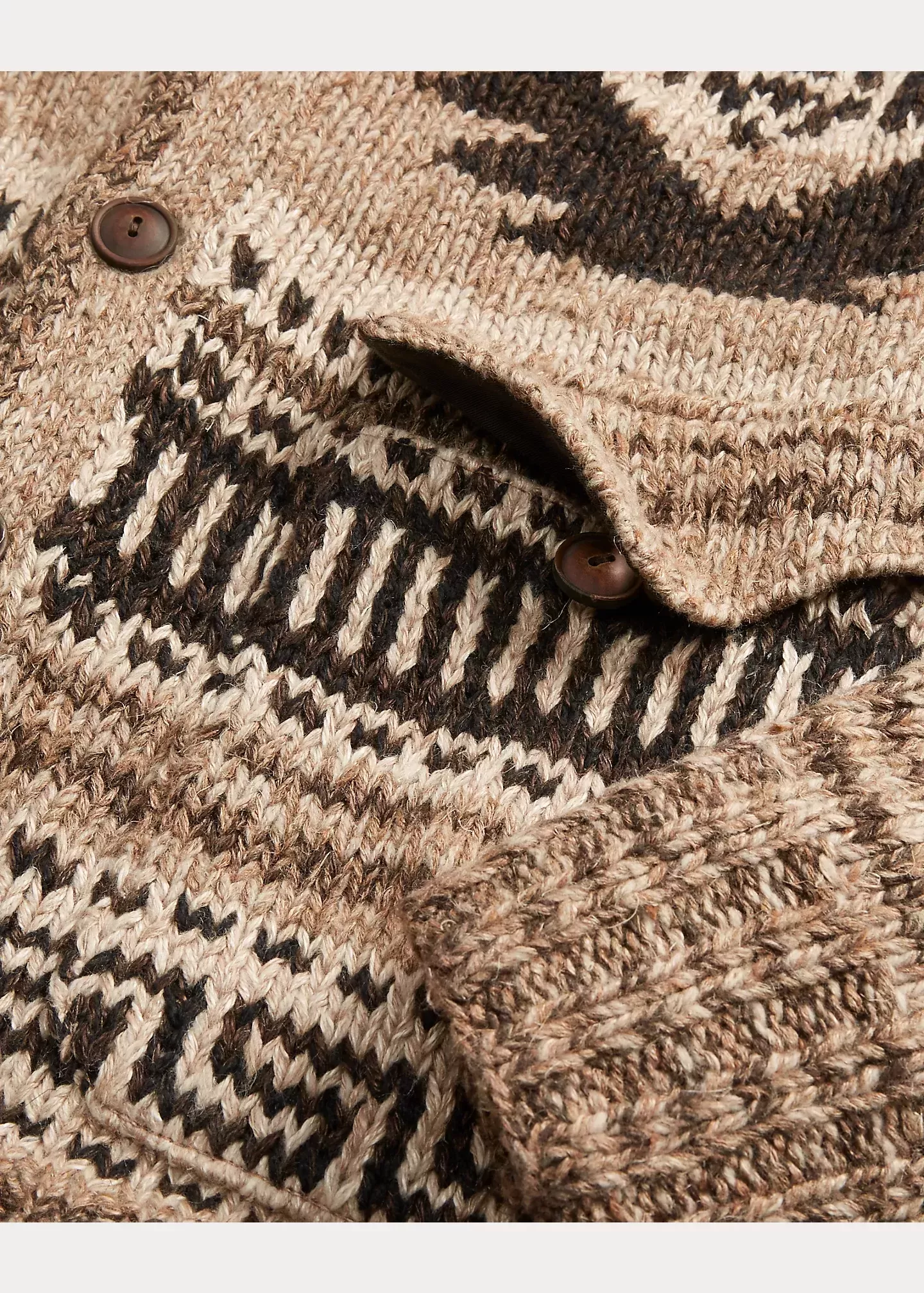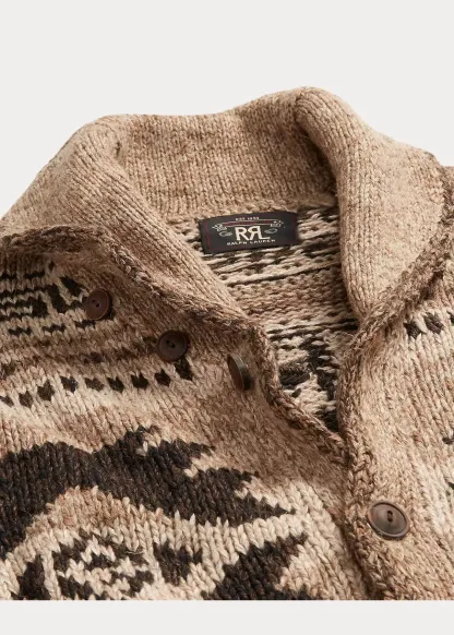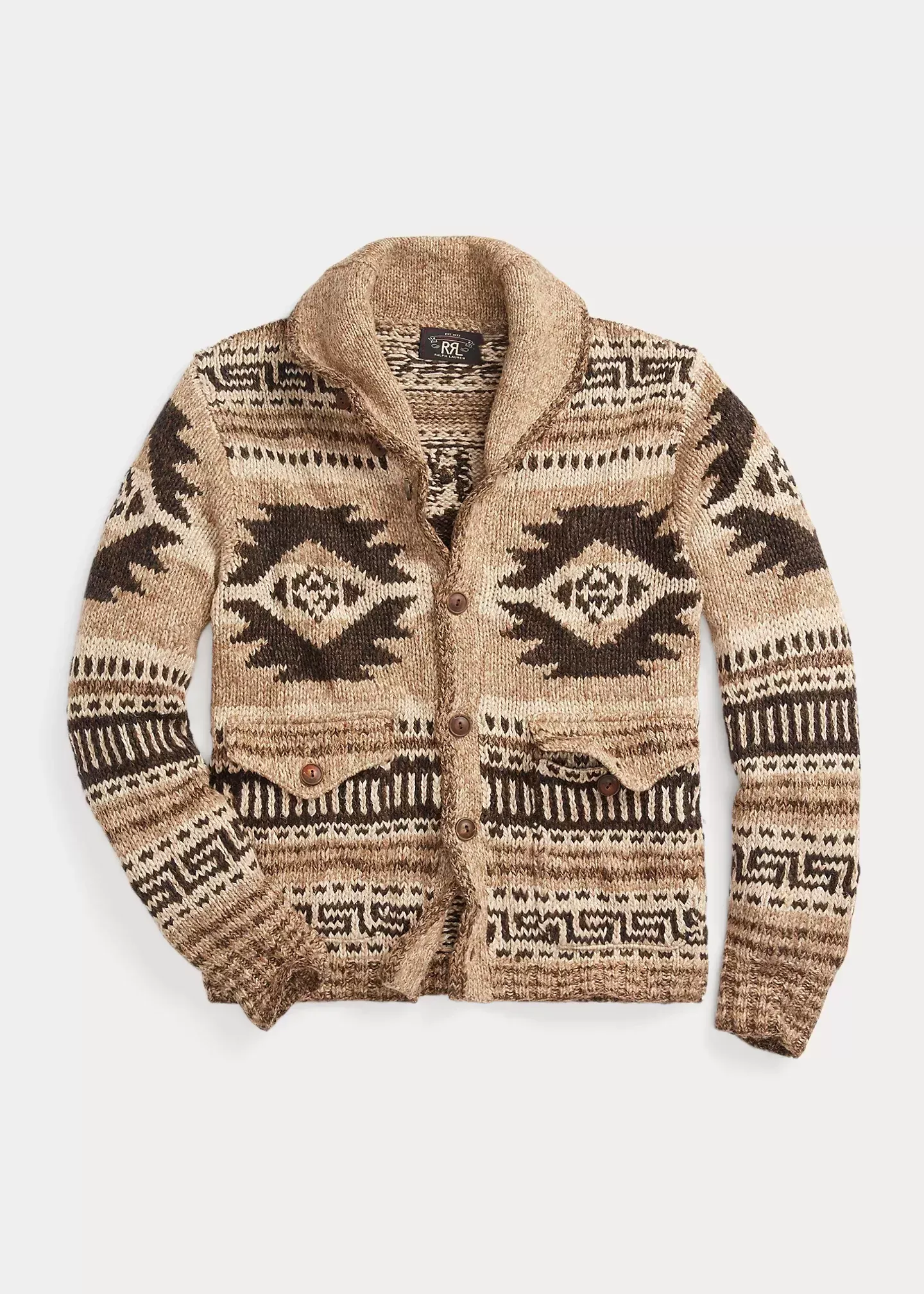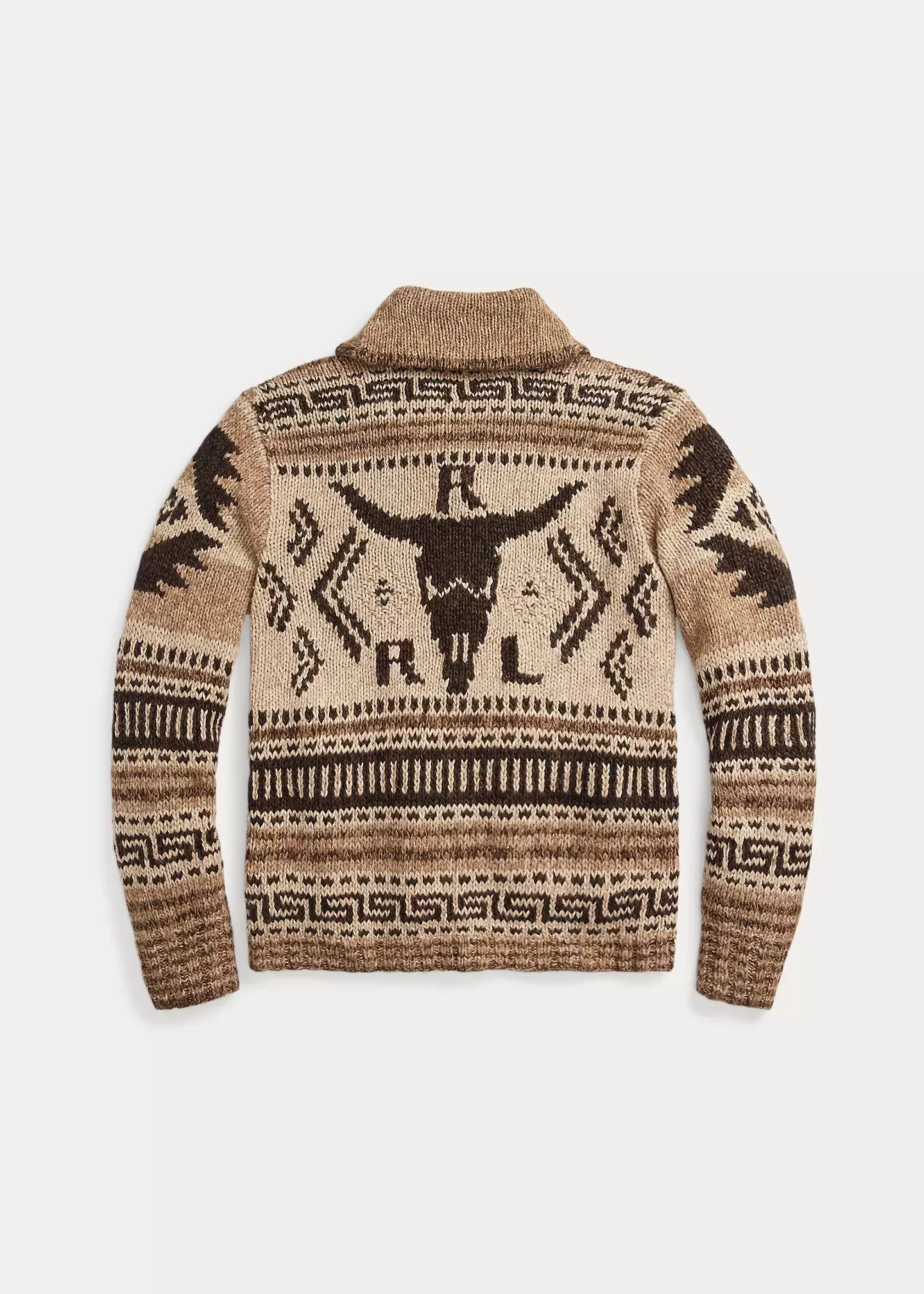 Knit by hand using nine marled yarns that are spun with linen, tussah silk, and wool. Southwestern-inspired motifs throughout. Steer and 鈥淩RL锟?logo knit at the back. Genuine horn buttons. Now available in extended XXS sizing. Sizes are based on Double RL men鈥檚 sizes. For customers who typically wear women鈥檚 apparel, we recommend ordering one size down from their usual size.