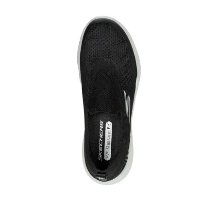 Luxuriate in waves of walking comfort with the skectkthers GO WALK Massage Fit™ - Tidal. This innovative design features a mesh upper with a laceless fit, an ultra-lightweight, responsive HYPER BURST® cushioned midsole and a supportive comfort insole.
