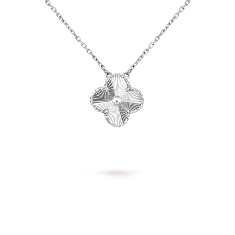 Vintage Alhambra pendant, guilloché rhodium plated 18K white gold.