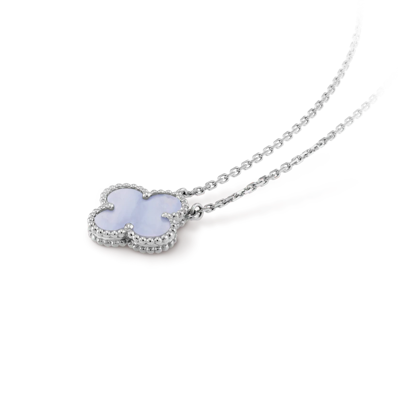 Vintage Alhambra pendant, rhodium plated 18K white gold, chalcedony.