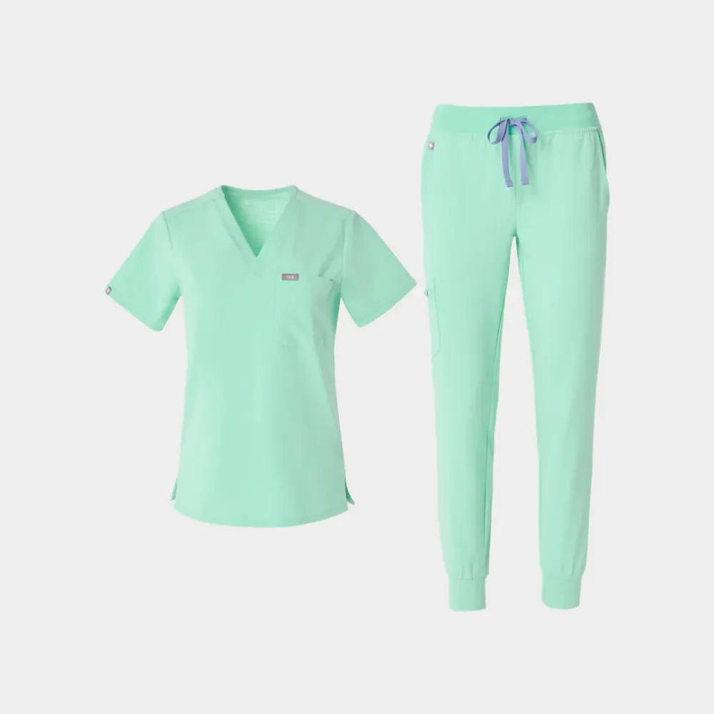 So you can hit the ground running, 24/7. The Catarina One-Pocket Scrub Top™ and Zamora Jogger Scrub Pants™ give you a sporty fit and on-the-go comfort.