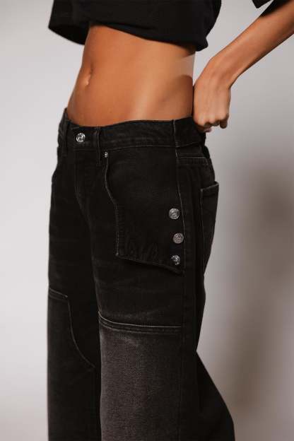 Your go-to fall jean is here! The Mason Jean is meticulously designed to effortlessly transition from low-rise to mid-rise for not only customizable comfort but unlimited ways to style. The Mason features a carpenter patch and adjustable side pocket details, combining style with practicality. With its unique front pocket flap detail, these jeans offer a distinctive one-of-a-kind touch to elevate your look effortlessly. Size up for a baggier look.