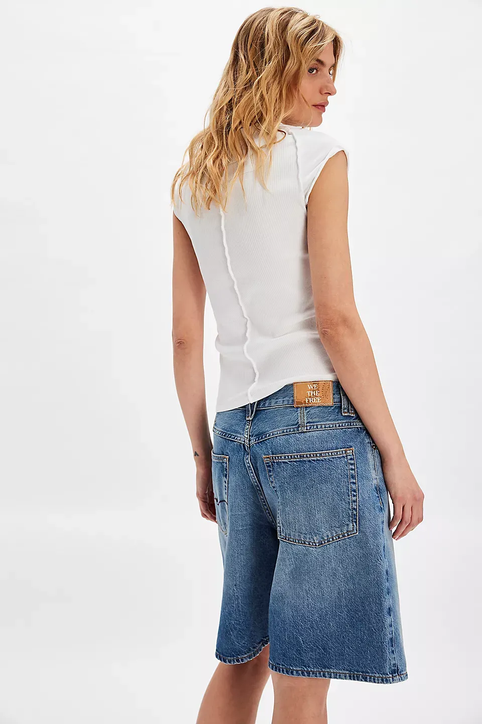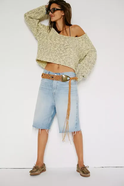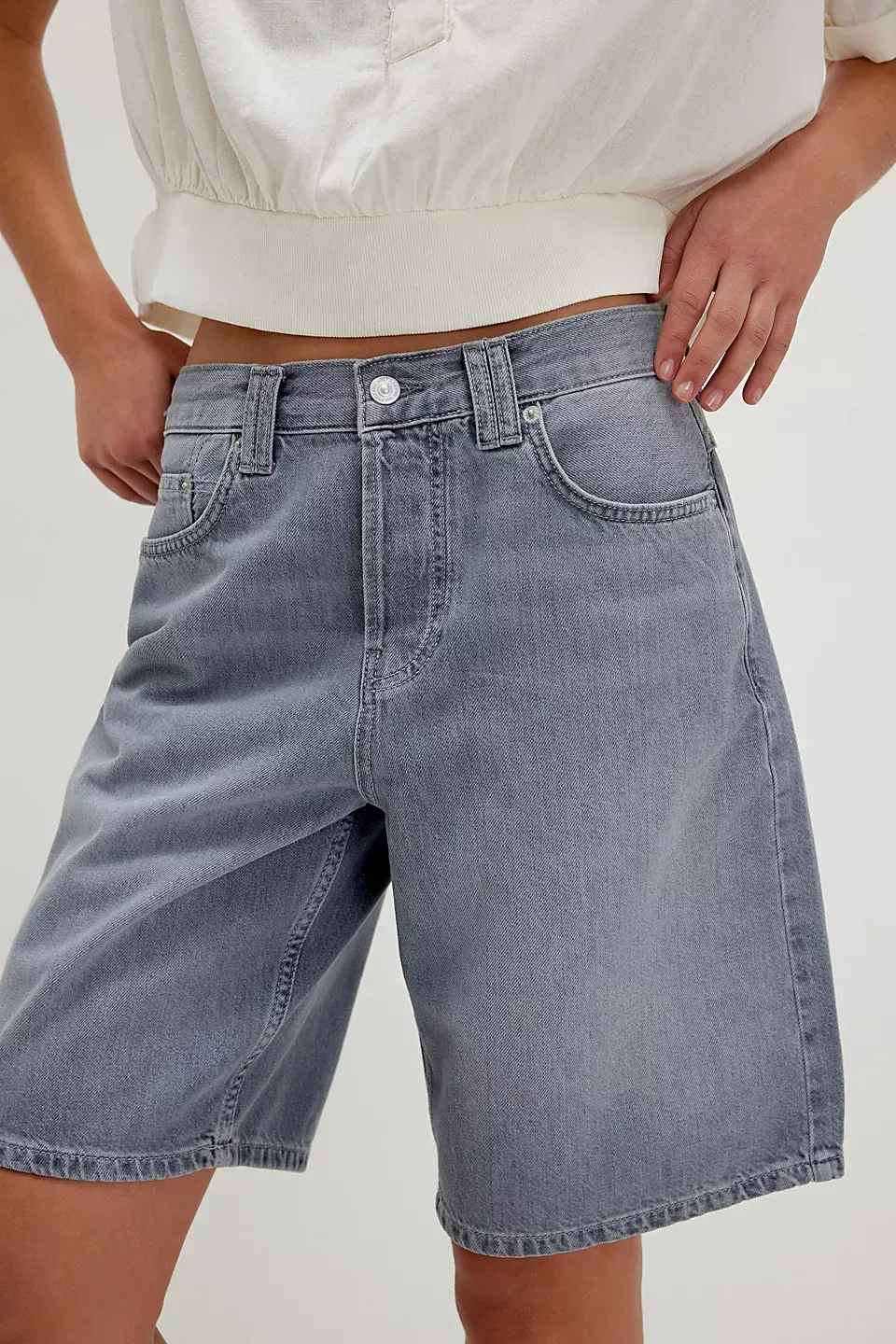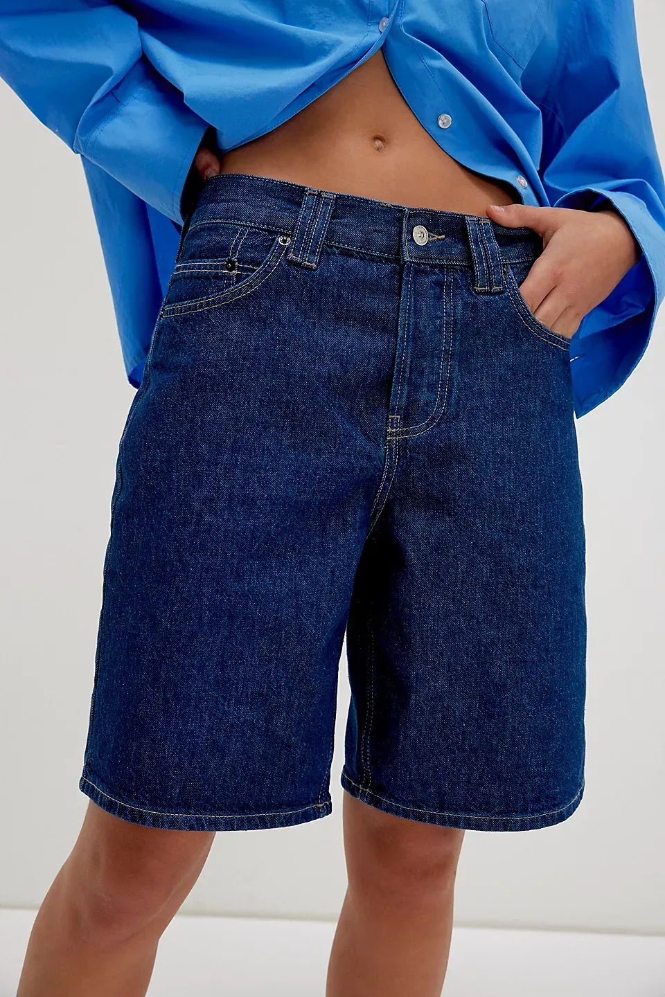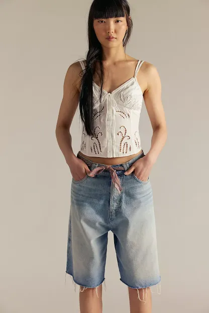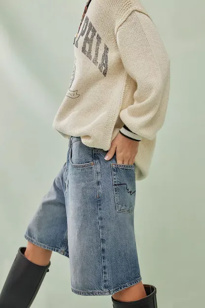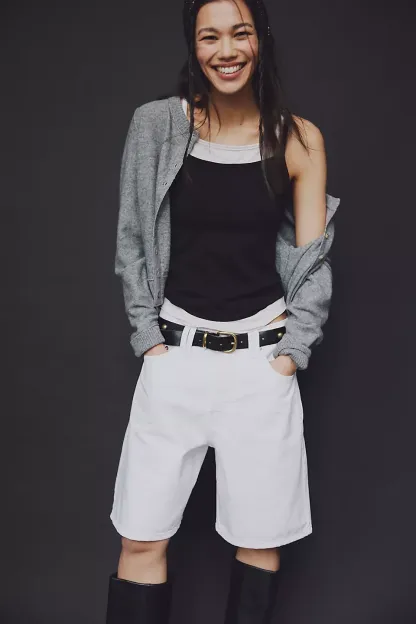 A need-now longline pair from our We The Free collection, these shorts are the perfect mix of classic and chic.**Fit:** Mid-rise, relaxed bermuda fit **Features:** Button-fly closure, five-pocket design, authentic rigid denim **Why We ? It:** Toughened up with moto boots or off-duty with ballet flats, this pair has endless ways to wear.