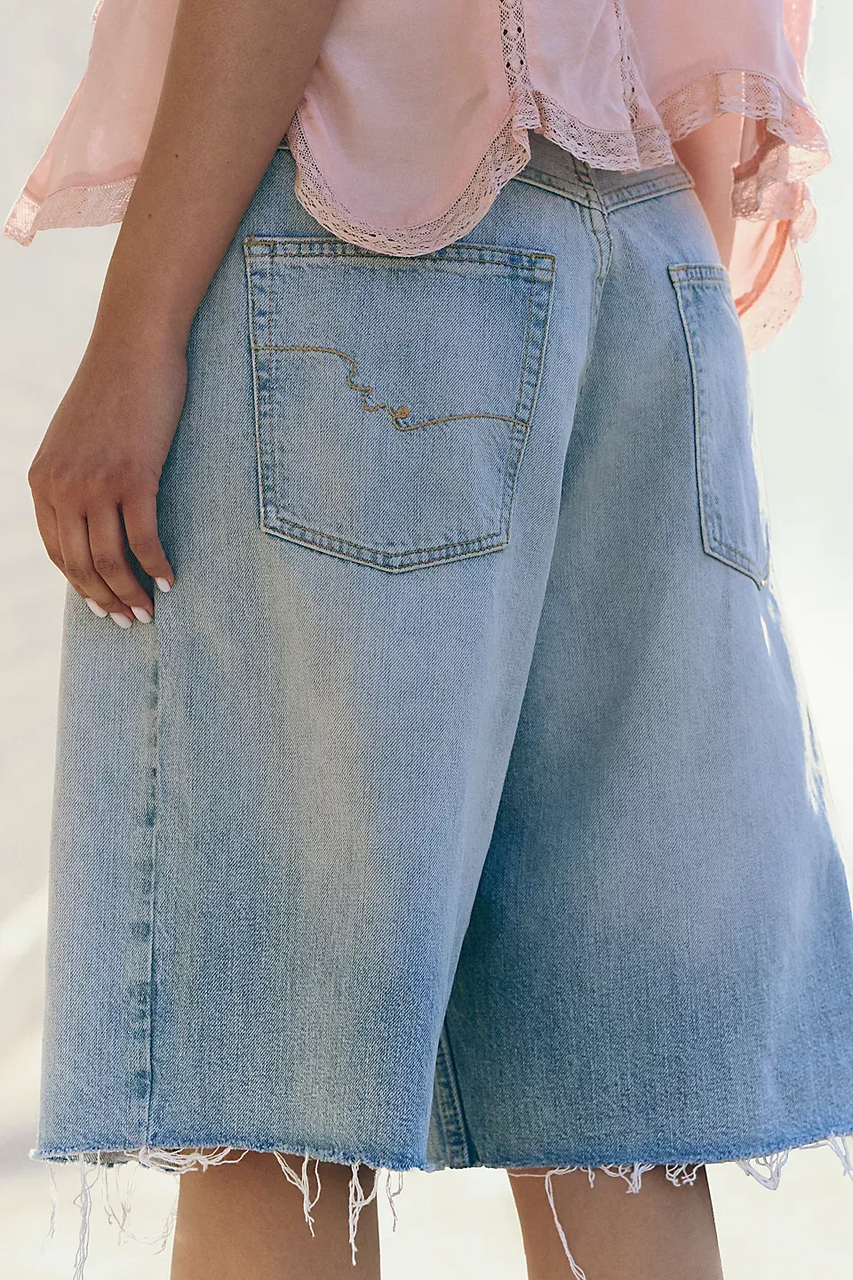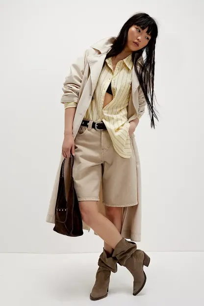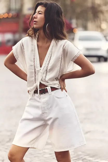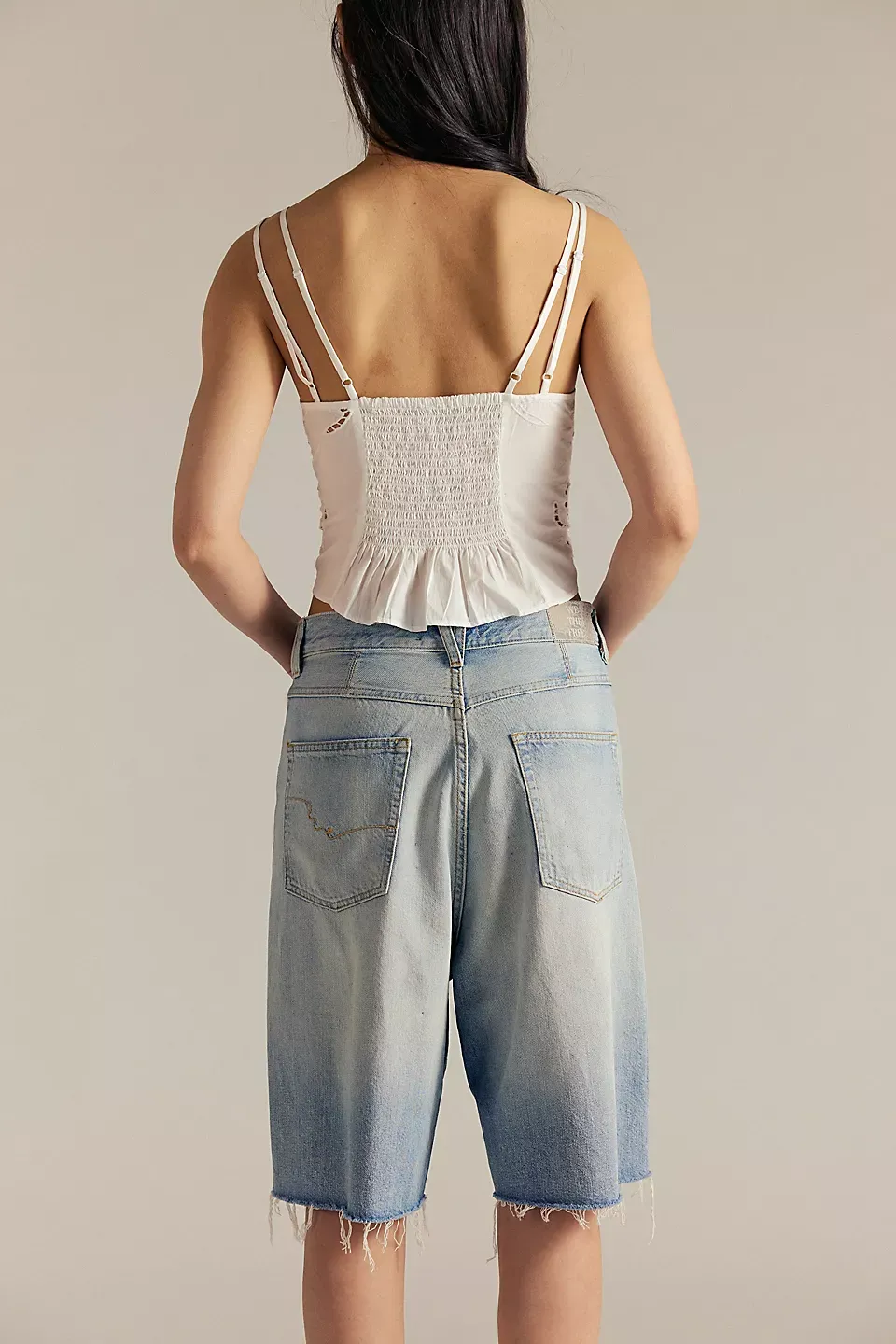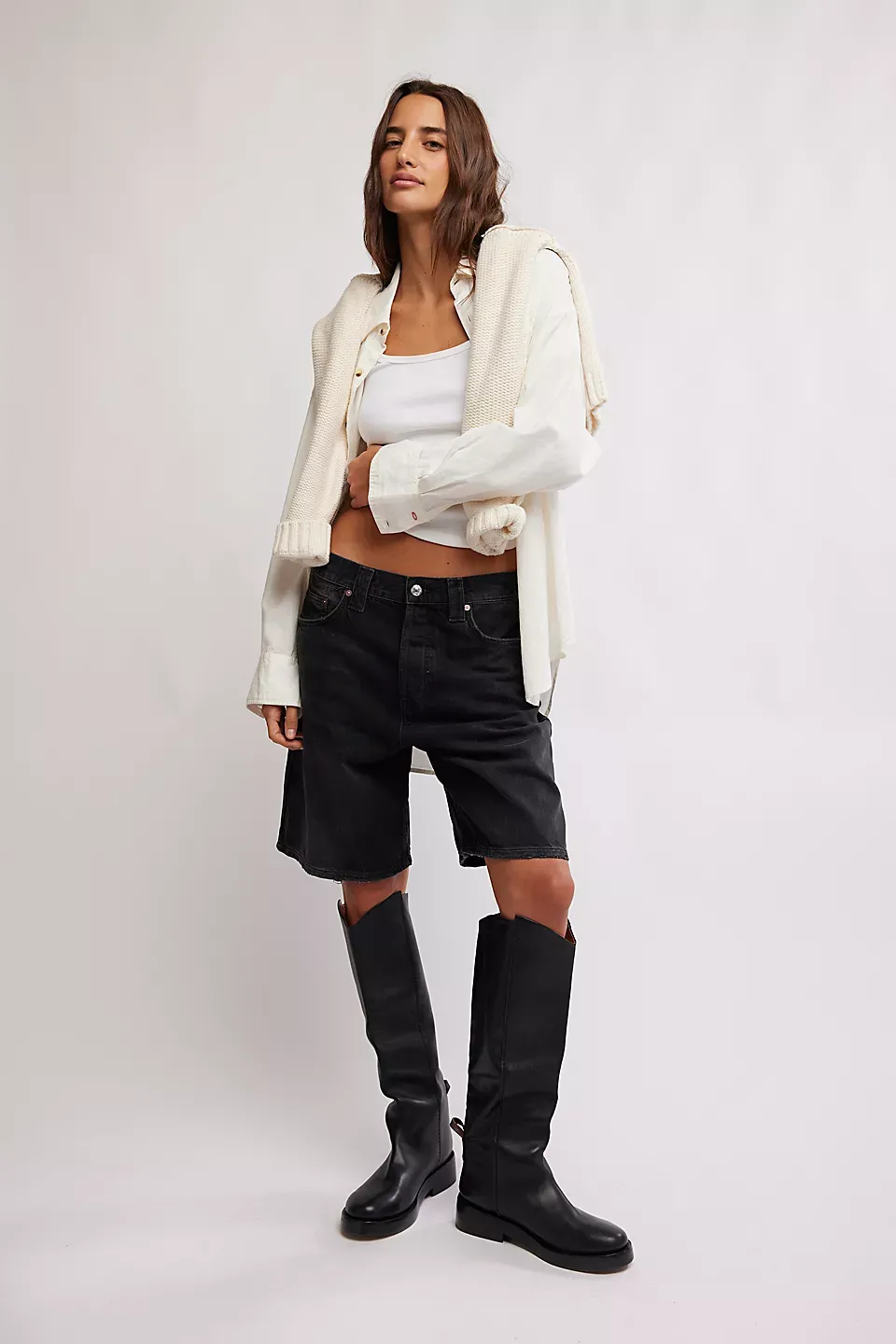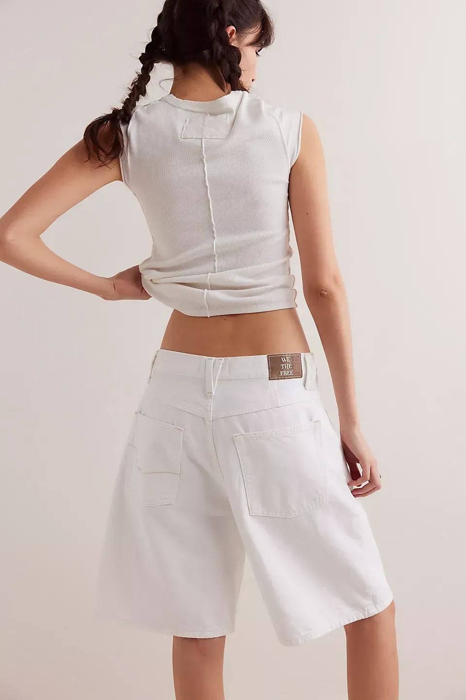 A need-now longline pair from our We The Free collection, these shorts are the perfect mix of classic and chic.**Fit:** Mid-rise, relaxed bermuda fit **Features:** Button-fly closure, five-pocket design, authentic rigid denim **Why We ? It:** Toughened up with moto boots or off-duty with ballet flats, this pair has endless ways to wear.