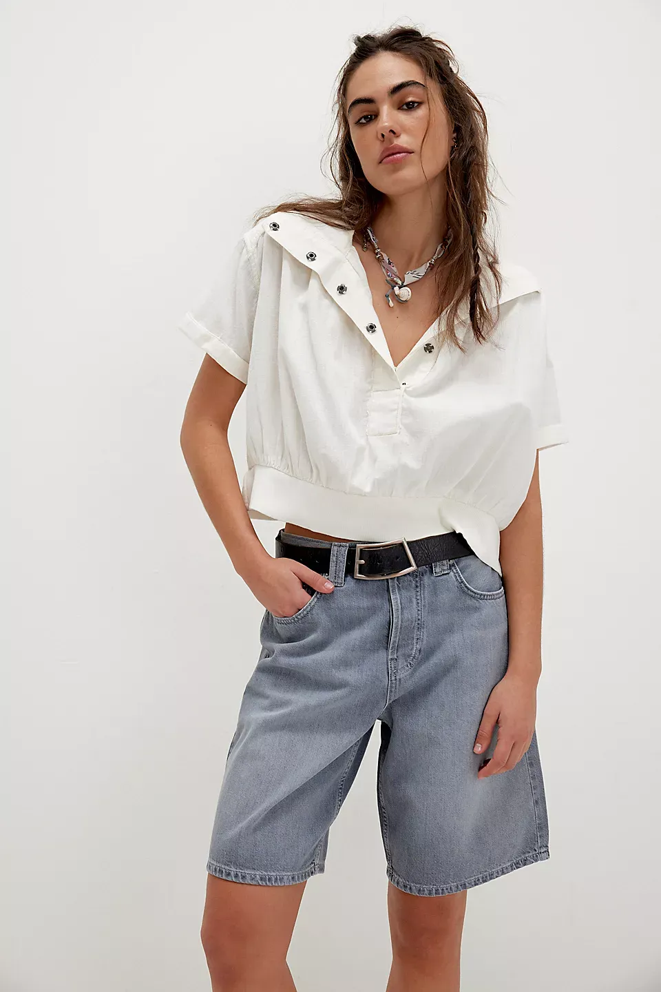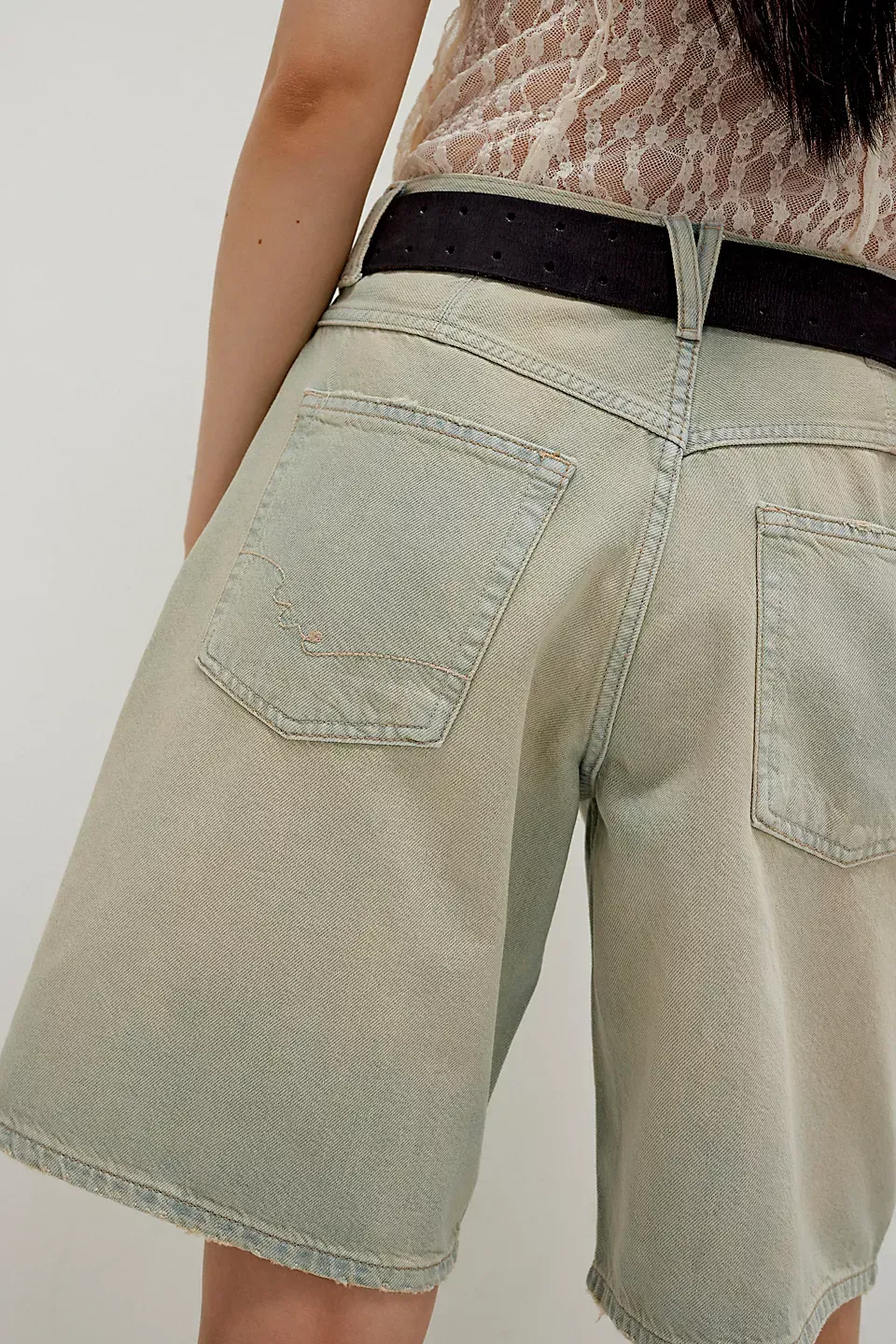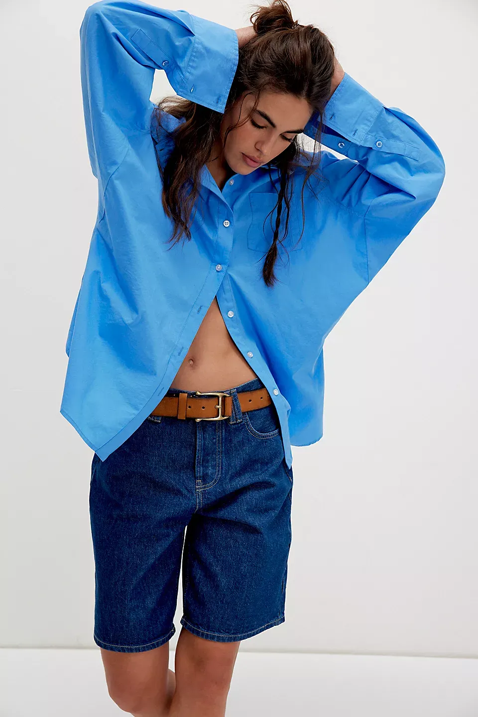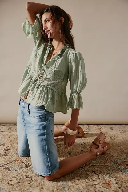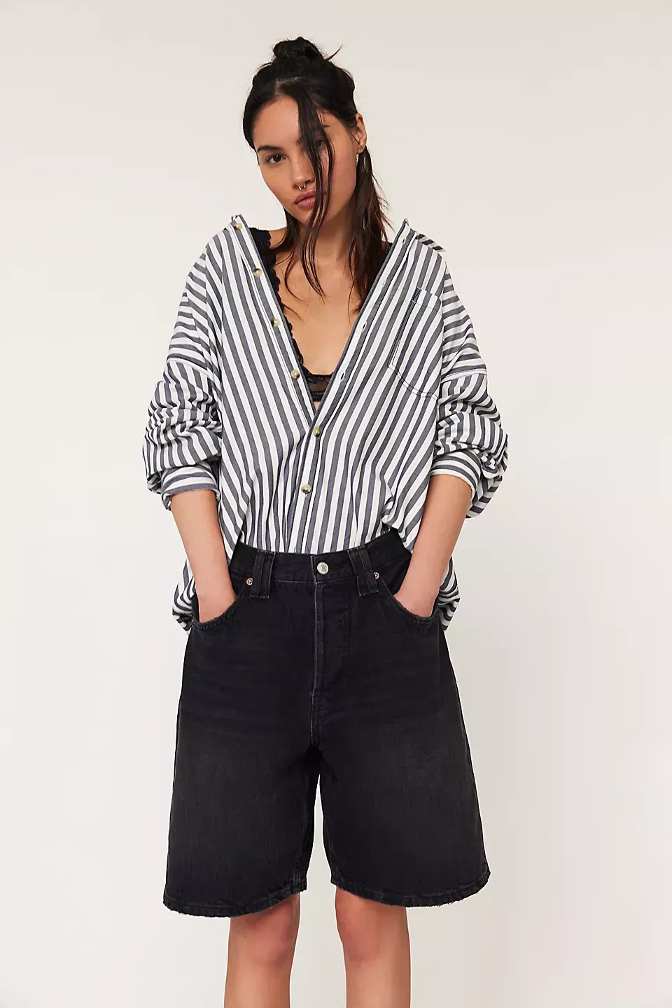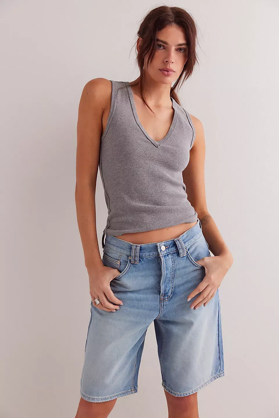 A need-now longline pair from our We The Free collection, these shorts are the perfect mix of classic and chic.**Fit:** Mid-rise, relaxed bermuda fit **Features:** Button-fly closure, five-pocket design, authentic rigid denim **Why We ? It:** Toughened up with moto boots or off-duty with ballet flats, this pair has endless ways to wear.