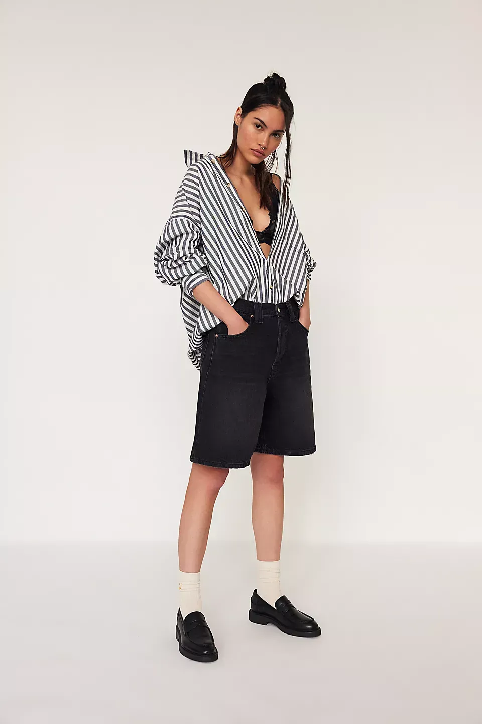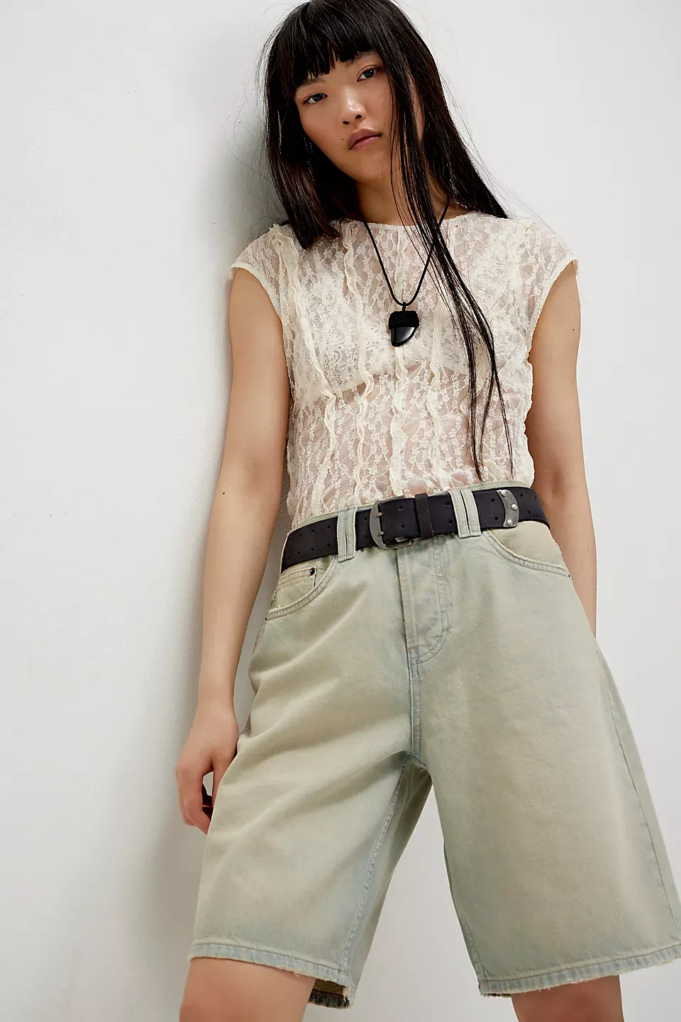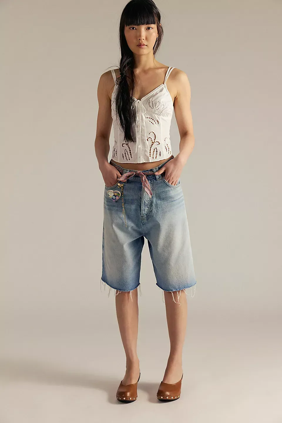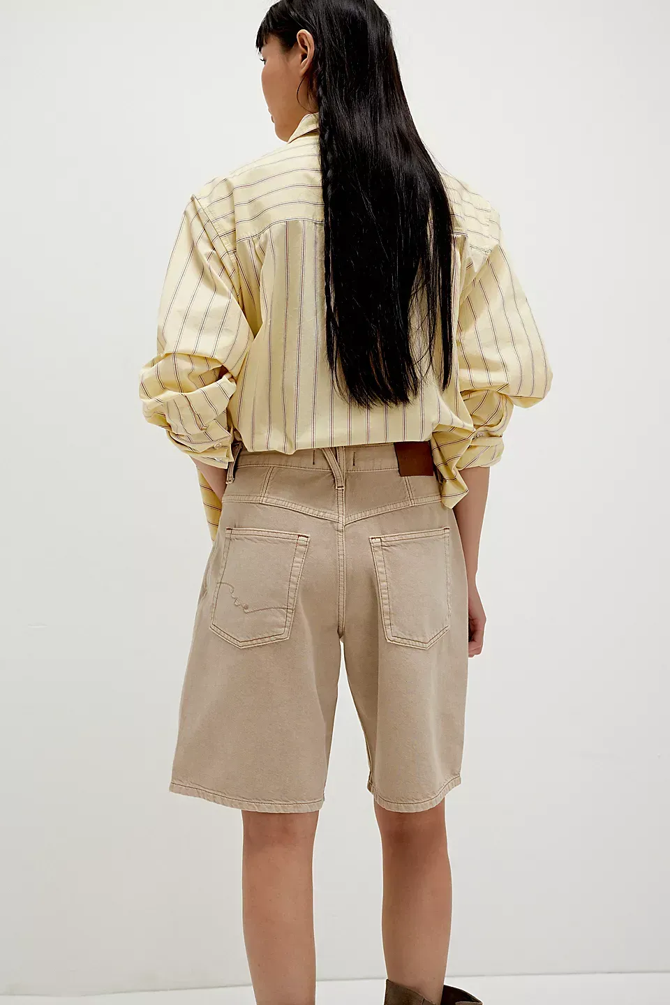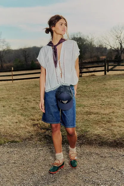 A need-now longline pair from our We The Free collection, these shorts are the perfect mix of classic and chic.**Fit:** Mid-rise, relaxed bermuda fit **Features:** Button-fly closure, five-pocket design, authentic rigid denim **Why We ? It:** Toughened up with moto boots or off-duty with ballet flats, this pair has endless ways to wear.