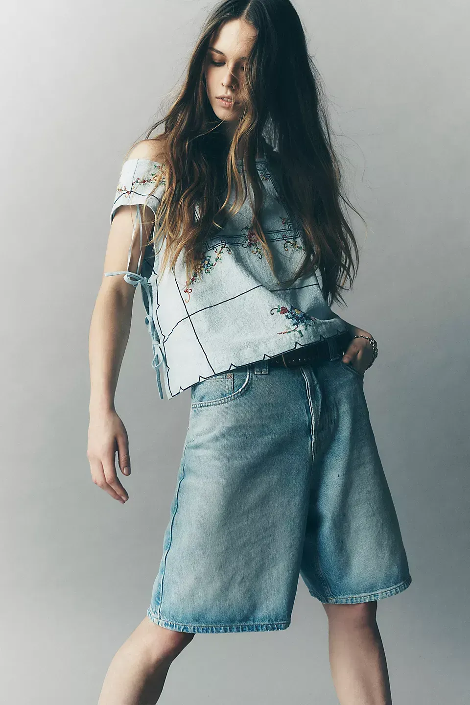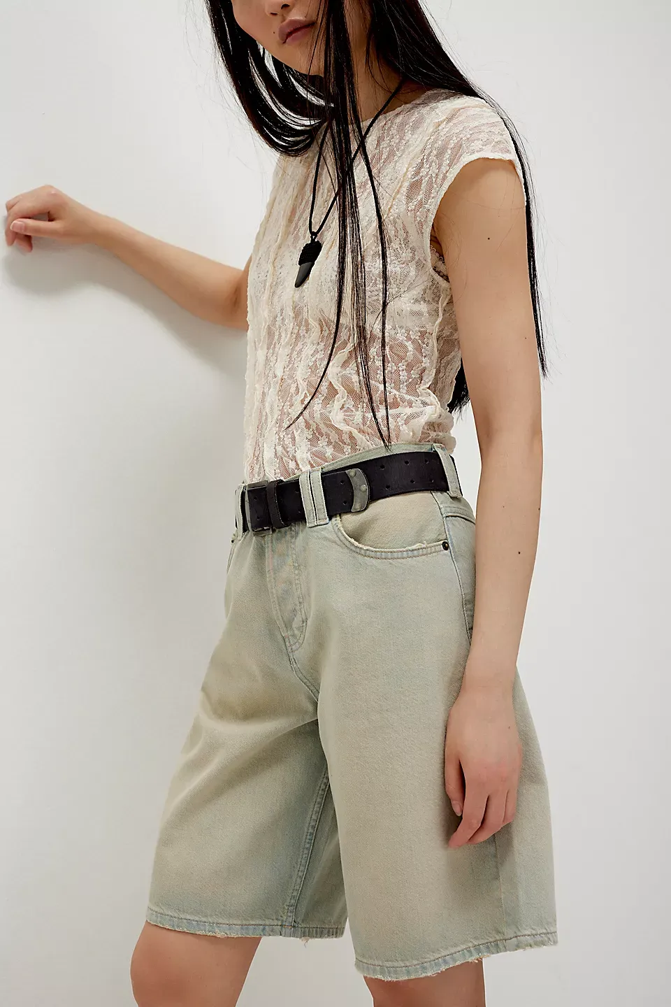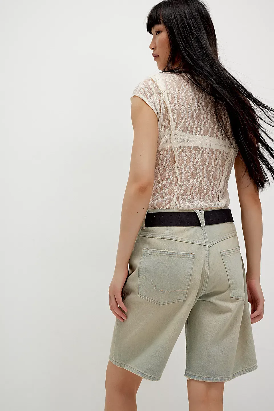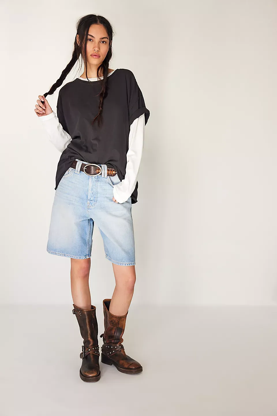A need-now longline pair from our We The Free collection, these shorts are the perfect mix of classic and chic.**Fit:** Mid-rise, relaxed bermuda fit **Features:** Button-fly closure, five-pocket design, authentic rigid denim **Why We ? It:** Toughened up with moto boots or off-duty with ballet flats, this pair has endless ways to wear.